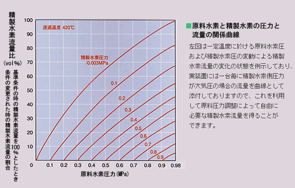製品情報 HOME製品情報ガス精製装置一覧パラジウム合金膜透過式水素ガス精製装置 MODEL-VP-DH ガス精製装置 半導体の製造工程において、各種の材料ガス・キャリアガスが使用されます。良質な半導体を形成するために、御使用になるガスの種類に応じた、最適な精製装置をご提案します。 パラジウム合金膜透過式水素ガス精製装置 MODEL-VP-DH 特長 水素以外の物質は全く透過しないパラジウム合金膜透過による精製方法であり、ダストを含まない超高純度水素ガスが得られます。 当社のパラジウムセルは長寿命※1です。独自に開発したパラジウム合金細管を用いており高い強度、耐久性と大きな水素透過能力を持っています。 再生操作は不要であり、常に安定した高純度の水素ガスが得られます。 装置は自動運転です。 ※1 実績7年以上 セル内部図 装置性能 形式 VP-DH 適用ガス H2 Inlet Outlet 最大圧力(MPa) 0.98 0.003 温度(℃) 5~35 5~35 ガス純度 ≧99.5% ≧99.999999% 各不純物 (vol.ppb) O2 - ≦0.1 CO - ≦0.1 CO2 - ≦0.1 H2 - - CH4 - ≦0.1 N2 - ≦0.1 H2O - ≦1 Particle ≧0.1µm ≦1pcs/0.0283m3 ※対応流量についてはご相談ください。 関連商品はこちら 常温吸着式精製装置 当社が開発した独自の触媒によりガスの高純度精製が可能です。 ゲッター式ガス精製装置 当社が開発した独自のゲッターによりガスの高純度精製が可能です。